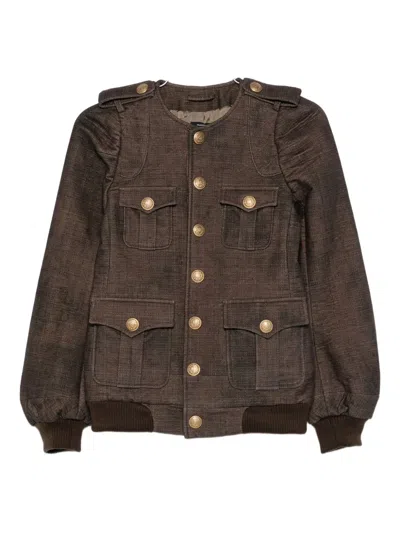 R13 Mélange-effect Multi-pocket Jacket In Brown