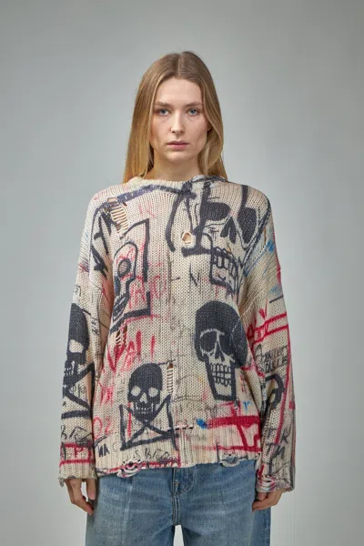 R13 Printed Oversized Sweater Skull Graffiti Print In Multi
