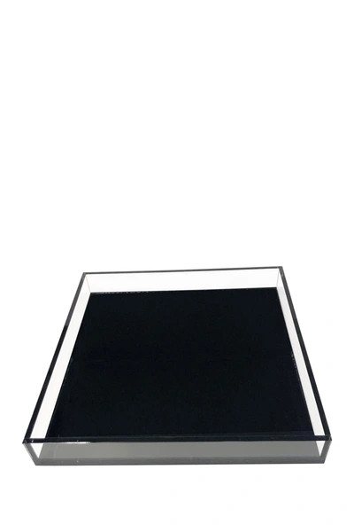 Serve up stylish looks, this tray is perfect for use as an everyday essential. Use this tray to serve up drinks, snacks, or to keep items organized anywhere. . Color: black. 9" x 9" x 1.25". Imported Orders cannot be shipped to Canada, Puerto Rico, APO, FPO or P.O. Boxes. Wipe clean with cloth Lucite