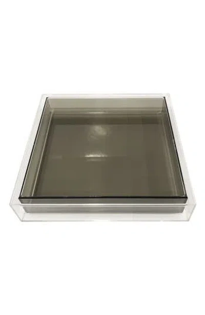 This double layered encased lucite tray is a gorgeous addition to organize your desk or vanity table. 10" x 10" x 2" Lucite Wipe clean Imported