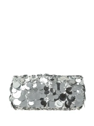 RABANNE Rectangular Sequin Clutch Bag Chain Strap In Metallic
