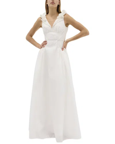 Introducing the stunning Rachel Gilbert Celia Gown in Ivory. This elegant dress measures approximately 62 inches from shoulder to hem and features pleated shoulders for a sophisticated touch. The design includes a center back zipper closure for easy wear. Made from 100% polyester, this gown is dry clean only and imported. The model is 5'9' and wearing a size AU 2/US 6. Please note that measurements may vary slightly by size. Elevate your evening look with this exquisite Rachel Gilbert gown.