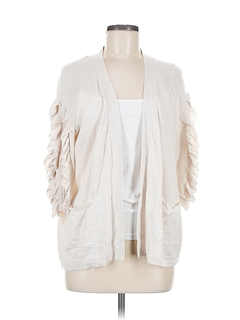 Rachel Parcell Cardigan, Size: Medium. Item Details: Ivory, Plunge Neckline, 3/4 Sleeve, Women's Sweaters & Sweatshirts, Cotton/Linen/Polyester