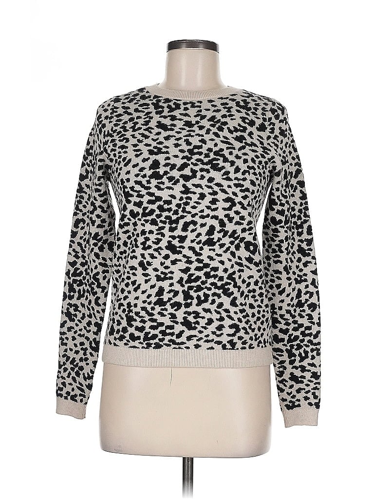 Rachel Parcell Pullover Sweater, Size: 8. Item Details: Silver, Animal Print Pattern, Crew Neck, Long Sleeve, Women's Tops, Viscose/Polyester/Nylon