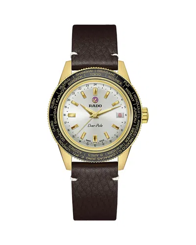 Introduced in 1962, the Captain Cook Over-Pole watch featured an elegant and entertaining way to tell the current time anywhere else in the world by aligning the city on the bezel that represents the time zone you're in with the hour hand and know at a glance the time anywhere else in the world. This limited edition re-issue features a Swiss-made R862 Worldtimer automatic movement, two straps (a bracelet and a leather strap) and an exhibition caseback engraved with the edition number of the 1,962 manufactured.Measurements: 39mm case; 10.9mm case depth.Strap/closure: Bracelet strap with deployant clasp closure; leather strap with adjustable buckle closure.Movement: Three-hand Swiss automatic movement, with 80-hour power reserve. Automatic movement: has the ability to automatically wind and recharge movement through natural motions of the wearer’s wrist or when stored in a watch winder.Complications: Date window; second time-zone dial.Other features: Water resistant to 10 ATM (100 meters); 24-city-inscribed rotating bezel; exhibition caseback; interchangeable strap with quick-release pins.Face: Sapphire crystal face. Stainless steel with yellow-gold PVD coating/leather Swiss made