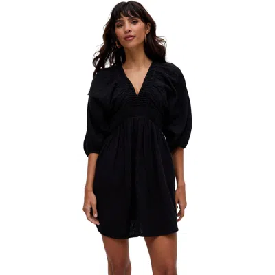 RAFFYA Soipoi Ruched V-neck Mini Dress In Black