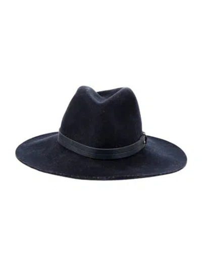 Blue wool Rag & Bone sun hat with a leather strap. | Rag & Bone Blue Wool Sun Hat in Blue