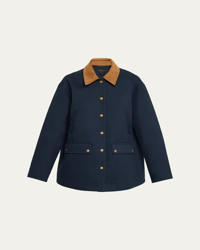 Rag amp; Bone "Cassidy" cotton canvas barn jacket featuring a contrasting collar and goldtone snaps for a polished look. Dropped shoulders Long sleeves Chest pockets Hip flap pockets Relaxed fit Snapfront Cotton Imported