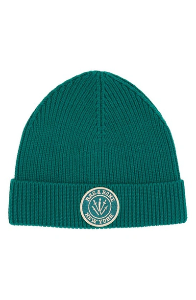 RAG & BONE Charlie Logo Patch Rib Wool Blend Beanie In Green