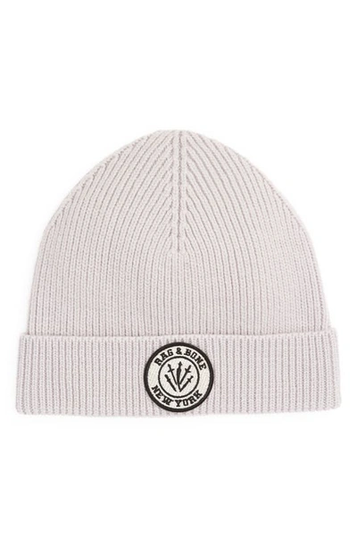 RAG & BONE Charlie Logo Patch Rib Wool Blend Beanie In Ivory