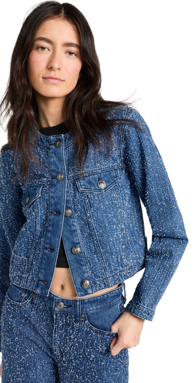 Fabric: Mid-weight, non-stretch denim. Round neckline. Long sleeves. Button placket. Flap breast pockets. Shell: 100% cotton. Wash cold. Imported, China. Measurements: Measurements from size XS Length: 19in / 48.0cm, from shoulder