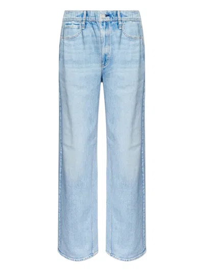 blue elasticated waistband five pockets belt loops faded effect wide leg