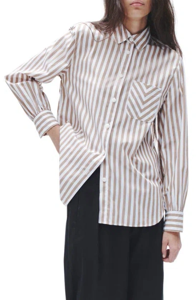 Maxine Stripe Cotton Button-up Shirt In Thin Brown Stripe