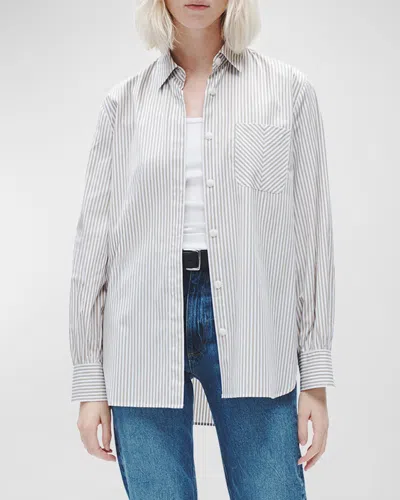 RAG & BONE Maxine Striped Button-front Shirt In Silverstrp