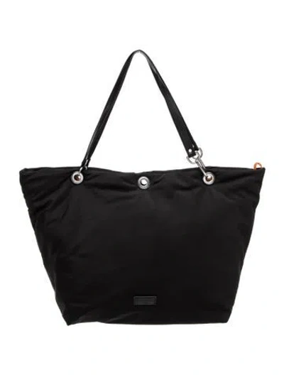 Rag & Bone Shoulder Bag Black & Orange Nylon Silver-Tone Hardware Leather Trim Flat Handles & Dual Shoulder Straps Leather & Studded Accents Nylon Lining & Three Interior Pockets Zip Closure at Top | Rag & Bone Nylon Shoulder Bag in Black/Orange