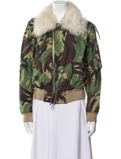 Rag & Bone Bomber Jacket Green Printed Pointed Collar Slit Pockets & Zip Closure Designer Fit: Jackets by Rag & Bone typically fit true to size. | Rag & Bone Printed Bomber Jacket in Green, Women's S
