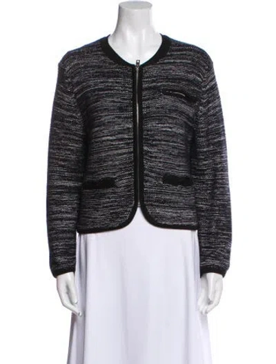 Rag & Bone Evening Jacket Black Printed Grosgrain Trim & Collarless Zip Closure Designer Fit: Jackets by Rag & Bone typically fit true to size. | Rag & Bone Printed Evening Jacket in Black, Women's M