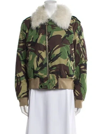 Rag & Bone Jacket Green Printed Fur Trim & Pointed Collar Slit Pockets & Zip Closure Designer Fit: Jackets by Rag & Bone typically fit true to size. | Rag & Bone Printed Jacket in Green, Women's L