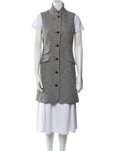 Rag & Bone Vest Grey Printed Stand Collar Flap Pockets & Button Closure Designer Fit: Jackets by Rag & Bone typically fit true to size. | Rag & Bone Printed Vest in Grey, Women's US 4 | S