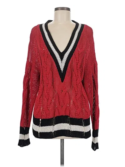 Rag & Bone Pullover Sweater, Size: Medium. Item Details: Red, Plunge Neckline, Long Sleeve, Beaded, Women's Tops, Cotton/Nylon