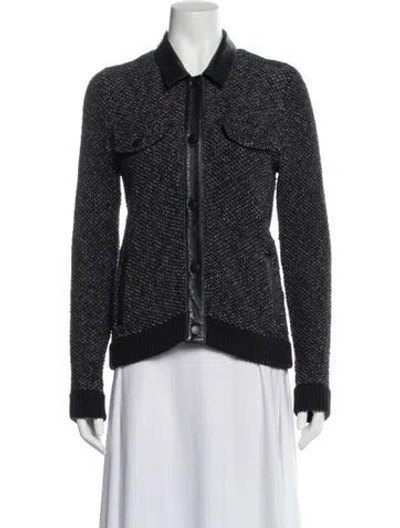 Rag & Bone Jacket Black Tweed Pattern Leather Trim Embellishment & Pointed Collar Slit Pockets & Button Closure Designer Fit: Jackets by Rag & Bone typically fit true to size. | Rag & Bone Tweed Pattern Jacket in Black, Women's S
