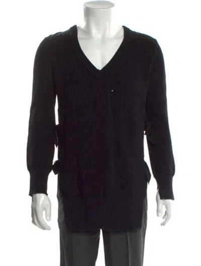 Pre-owned V-neck Long Sleeve Pullover In Black