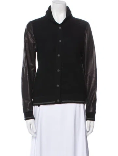 Rag & Bone Wool Bomber Jacket Black Leather Trim Embellishment & Stand Collar Slit Pockets & Snap Closure Size not listed, estimated from measurements. Designer Fit: Jackets by Rag & Bone typically fit true to size. | Rag & Bone Wool Bomber Jacket in Black, Women's XS