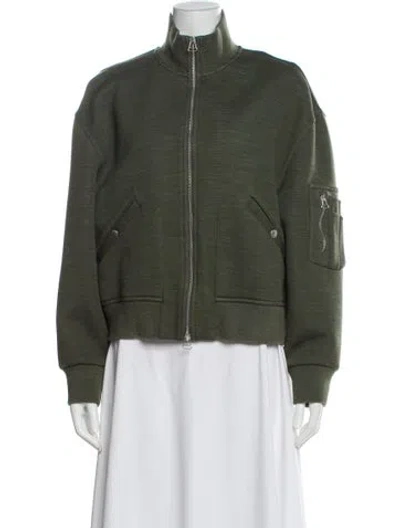 Rag & Bone Wool Bomber Jacket Green Stand Collar Slit Pockets & Zip Closure Designer Fit: Jackets by Rag & Bone typically fit true to size. | Rag & Bone Wool Bomber Jacket in Green, Women's L