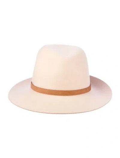 Light pink wool Rag & Bone fedora with leather trim embellishment at base of crown and a logo-embellished stud accent on the side. Designer size M. | Rag & Bone Wool Fedora in Pink