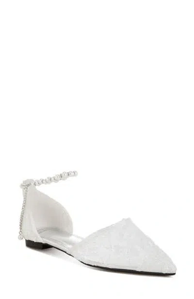 RAG & CO Seymor Faux Pearl Tie Strap Lace Flat In White