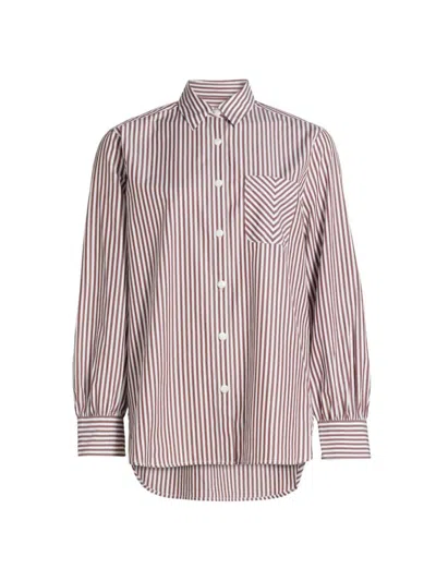 RAG & BONE Maxine Cotton Button Down Shirt In Thin Brown Stripe