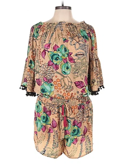 Raga Romper, Size: Large. Item Details: Tan, Paisley Pattern, Boatneck, Flared Leg, 3/4 Sleeve, Junior Dresses, 100% Polyester
