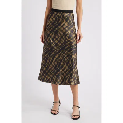 Berlin Abstract Print Satin Midi Skirt In Cypress