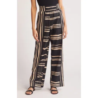 Uniquely bold stripes lends artistic flair to wide-leg pants topped with a smocked waistband and dual pockets. 30 1/2" inseam; 20" leg opening; 13" front rise; 16" back rise (size Medium)<br> Smocked waist Side-seam pockets 100% cotton Dry clean Imported