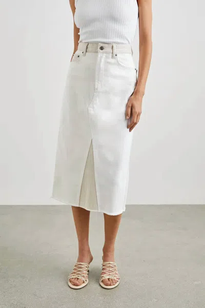 RAILS Highland Two-tone Denim Midi Skirt In Ecru Patchwork