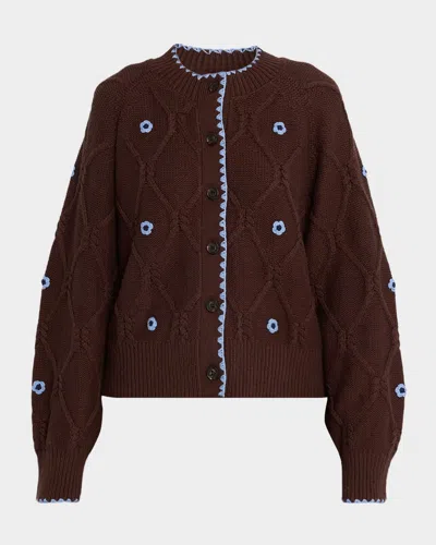 Crafted from luxurious cableknit, the "Laurie" cardigan by Rails boasts a diamond motif, accented with contrasting blanket stitching and embroidered flowers throughout. Crew neckline Long raglan sleeves Relaxed fit Hem falls to the hip Buttonfront Cotton/nylon/polyamide/wool Hand wash cold Imported