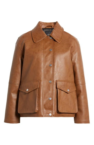 Rails "Mathis" faux leather jacket finished with silvertone hardware Approx. 25.5"L from shoulder to hem Spread collar; snap front Dropped shoulders Long sleeves; approx. 22.6"L Dual waist snap-flap pockets Mid-length Relaxed fit Polyurethane/polyester/cotton Lining: Polyester Dry clean Imported