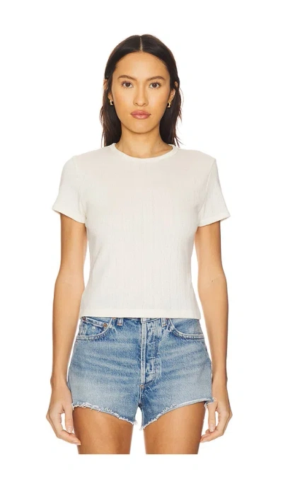 Rails Muse Pointelle Tee in Ivory - Ivory. Size XL (also in L, M, S, XS). 50% cotton 50% polyester. Machine wash. Pull-on styling. Ribbed neckline trim. Lightweight pointelle fabric. Garment is made with a semi-sheer fabric, undergarments can show through. RAIL-WS1052. 804D-324D-003. Launched in 2006, Rails is a unique brand of fashion fusing California comfort activewear with European styling. High quality fabrics, narrow cuts, and unique lines; this collection is influenced by international travel and metropolitan lifestyle.