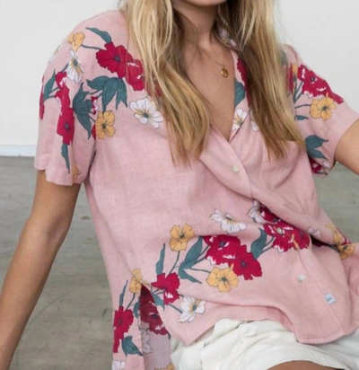 This button down shirt is comfortable yet polished.Lightweight linen, short sleeve, button-down collared top featuring Hawaiian-inspired floral print, shell buttons, and single chest pocket. 55% Linen 45% Rayon. Imported. Hand Wash Cold. Hang Dry. No Bleach.