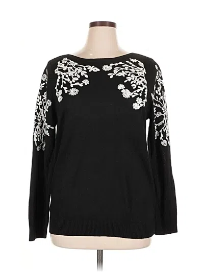 Rain + Rose Pullover Sweater, Size: X-Large. Item Details: Black, Floral Pattern, Boatneck, 3/4 Sleeve, Embroidered, Women's Tops, Polyester/Viscose/Nylon