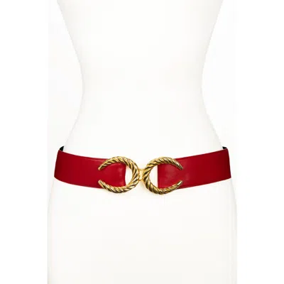 RAINA BELTS Cc Buckle Leather Belt In Red