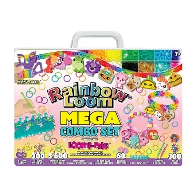 The Loomi Pals MEGA Combo rubber band set from Rainbow Loom is the perfect craft to keep your kids busy for hours! This kit includes 5,600 bands, 300 C-Clips, 60 Charms, 300 beads, 2 happy loom, 12 gift bags, and a carrying case with multiple compartments. The carrying case makes it easy to organize materials and bring them with you on the go. These high quality latex-free rubber bands with great elasticity are the original rubber band bracelets first ever made by multiple TOTY award winning Choon's Design the creator of Rainbow Loom. Recommended for ages 7 and up.Learning Skill: Motor SkillsRecommended Ages: 7 Years And UpMeasurements: 2.32 Length/InchesCountry of Origin: Imported