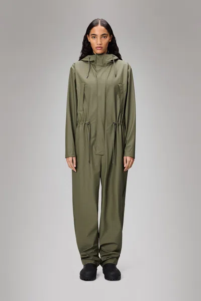 Jumpsuit Regular is a rainsuit with high practicality and a string adjustment that elegantly accentuates the waist. This jumpsuit is a combined version of Rains' Jacket and Rain Pants. It features a hood with tie cord, slip in welt pockets and snap closure at cuffs and leg hem. Jumpsuit Regular is completed with a zipper closure under a storm flap with invisible snaps. The finish is soft with a lightweight feel, making this one-piece perfect for commutes on bike. This waterproof jumpsuit is cut from Rains’ signature PU fabric and features welded seams to make the jumpsuit both resistant to water and wind. - Waterproof signature PU fabric - Zip closure under storm flap with invisible snaps - Hood with tie cord - String adjustment at waist - Slip in welt pockets - Snap closure at cuffs and leg hem - Welded seams - Regular fit