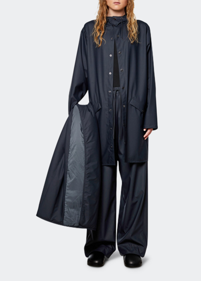 RAINS Long Snap-front Jacket In Navy