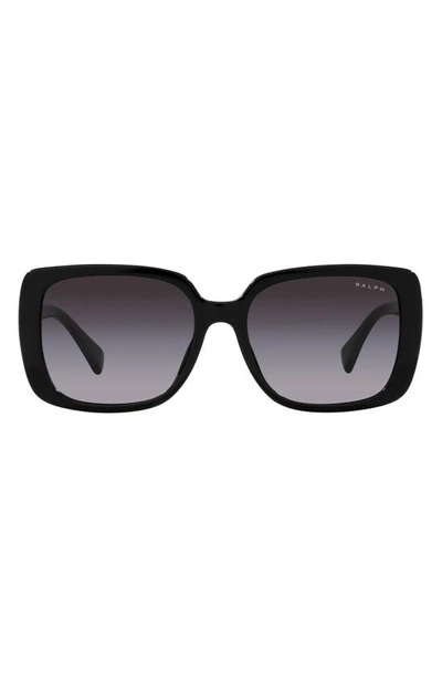 RALPH 55mm Gradient Rectangular Sunglasses In Shiny Black
