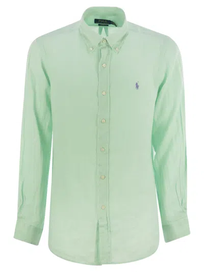 RALPH LAUREN Custom-fit Linen Shirt In Green