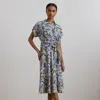 RALPH LAUREN Floral Belted Crepe Dress In Blue Multi