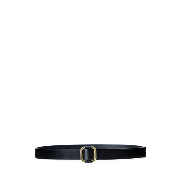 Crafted with supple leather this slender belt features a polished brass-finished slide buckle with signature "LRL" engraving.
