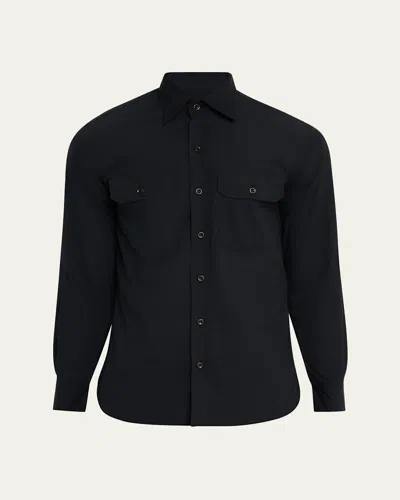 RALPH LAUREN Men's Sueded Cotton Poplin Button-down Shirt In Black