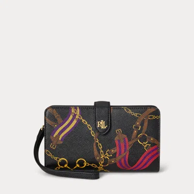 RALPH LAUREN Print Crosshatch Leather Tech Wristlet In Multi